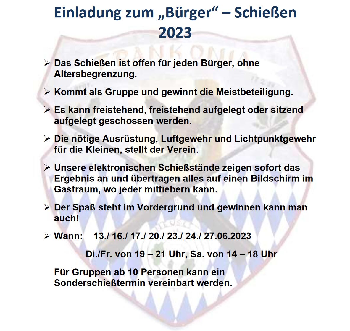 Vorläufige Info zum Bürgerschießen: